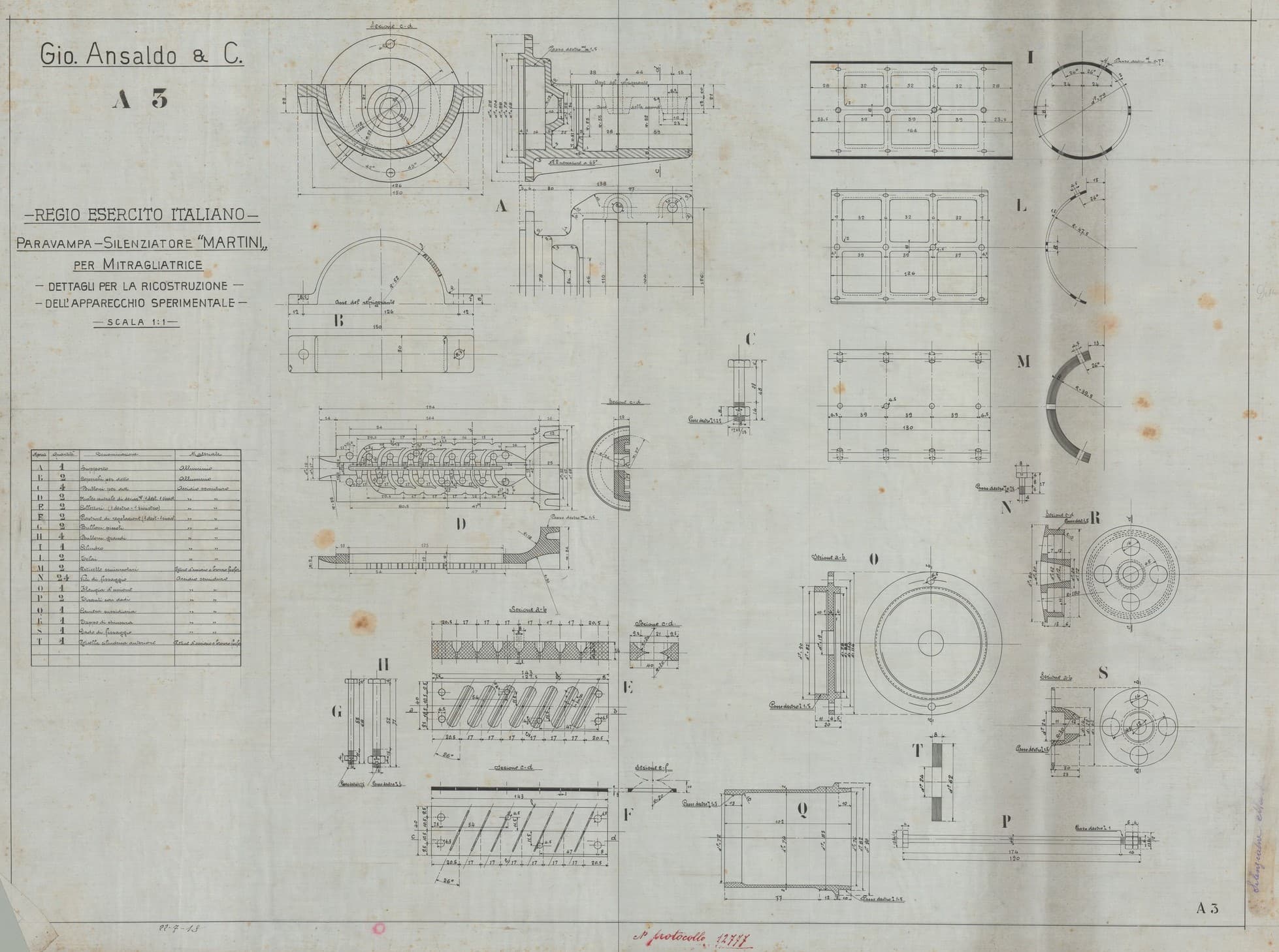 Costruzioni 76/45 S11 - dettagli per la ricostruzione del silenziatore Martini per mitragliatrice