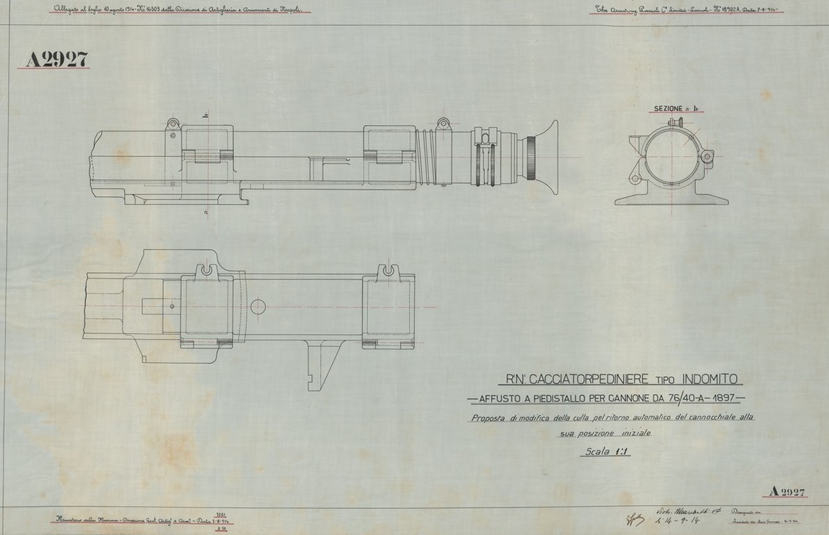 Costruzione da 76/45 S. 1911 - paravampa e silenziatore Martini per mitragliatrice