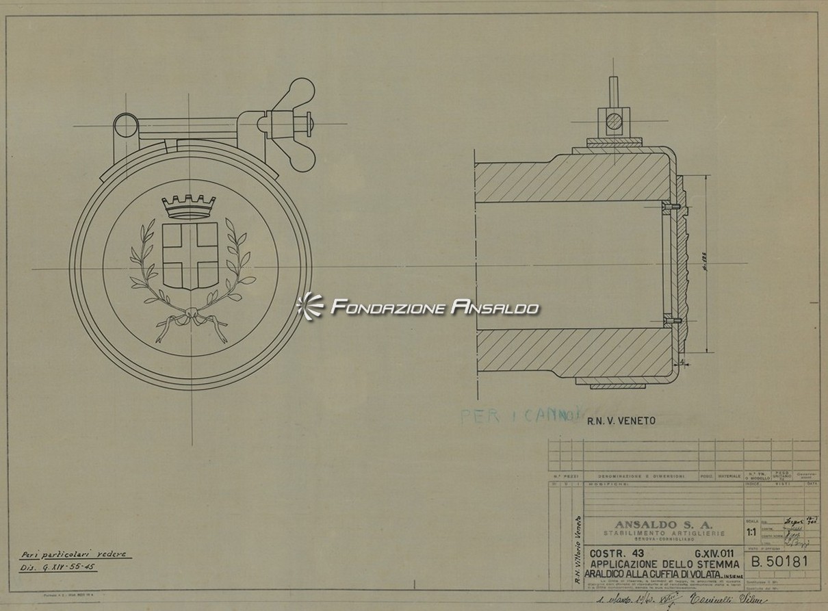 Costruzione 43 - cuffia di volata con stemma araldico per la Regia Nave Vittorio Veneto
