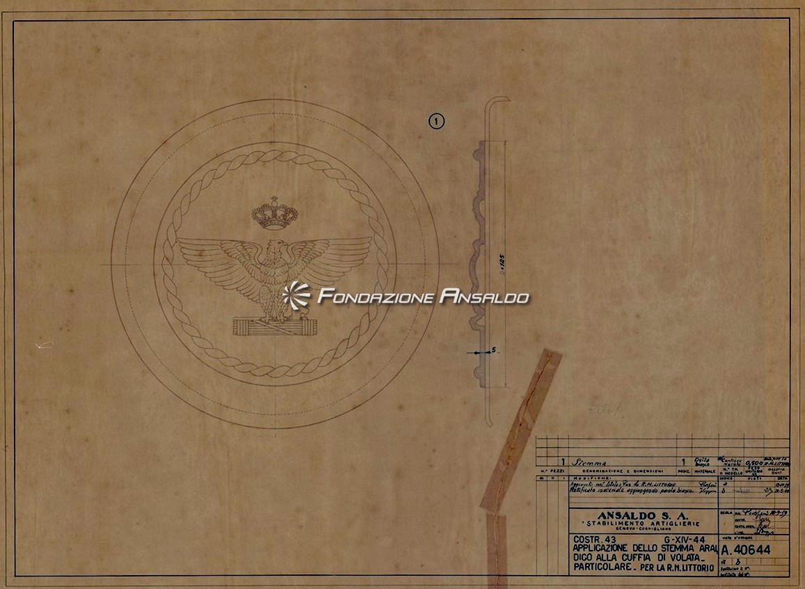 Costruzione 43 - stemma araldico per cuffia di volata per la Regia Nave Littorio