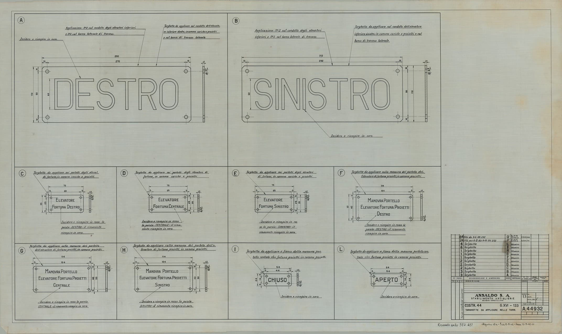Costruzione 76/45 - iscrizioni da stampare su cannoni