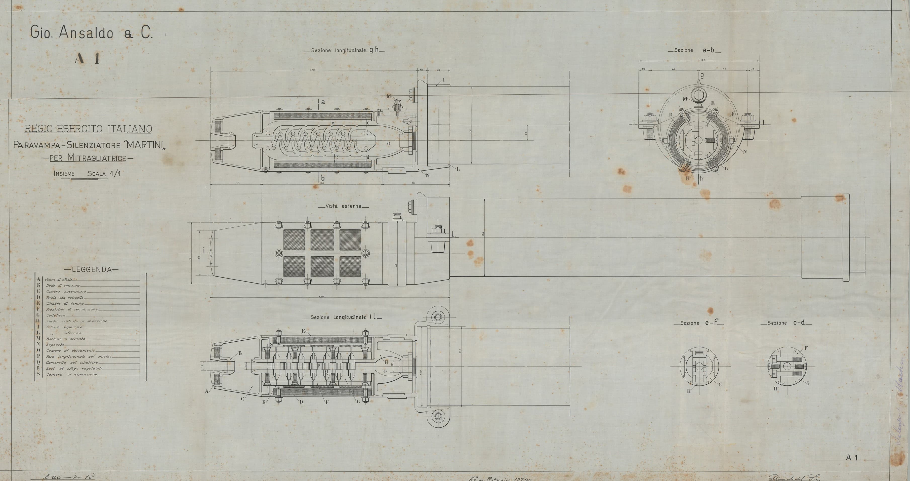 Costruzione da 76/45 S. 1911 - paravampa e silenziatore Martini per mitragliatrice