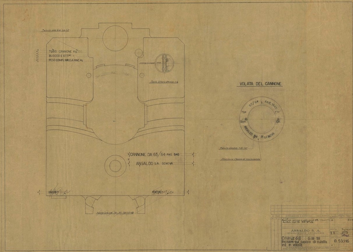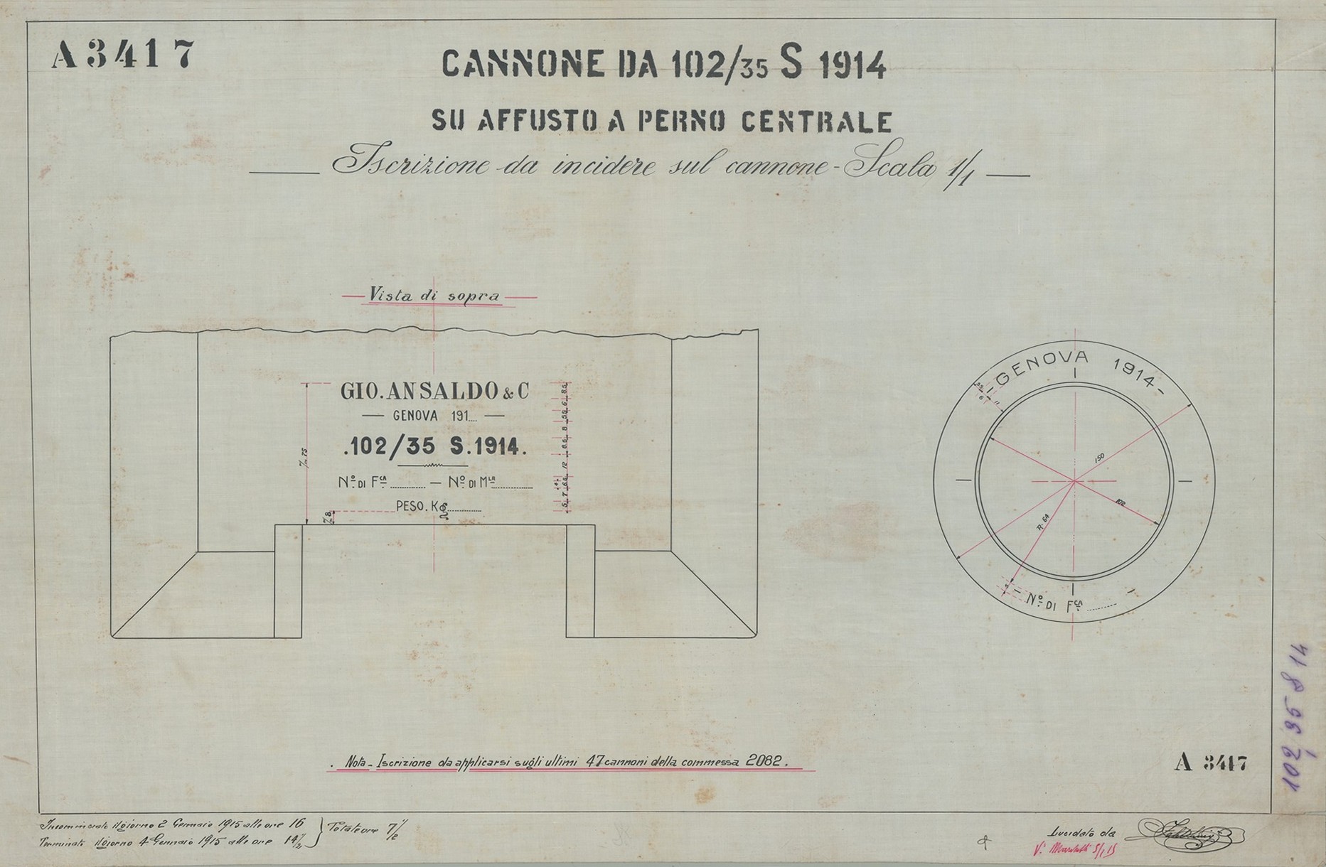 Costruzione 102/35 S.1914 - iscrizione da incidere sul cannone
