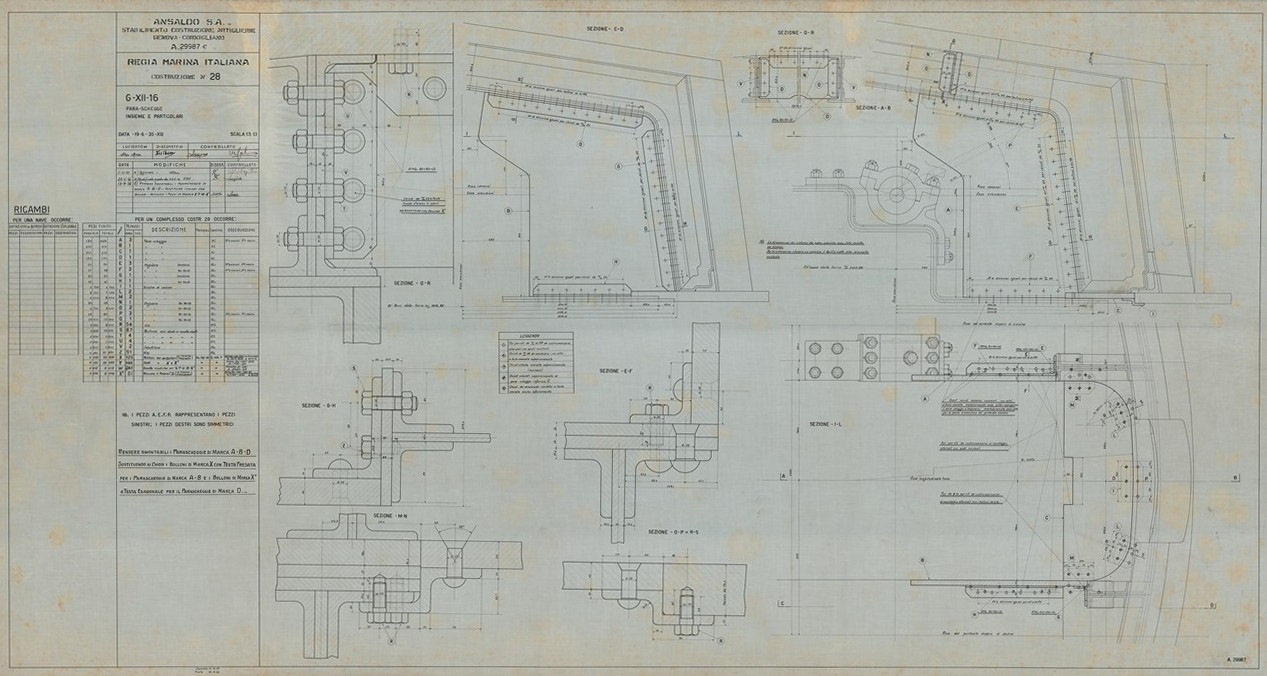 Costruzione 43 - particolari dello stemma araldico per la cuffia di volata per Regia Nave Vittorio Veneto