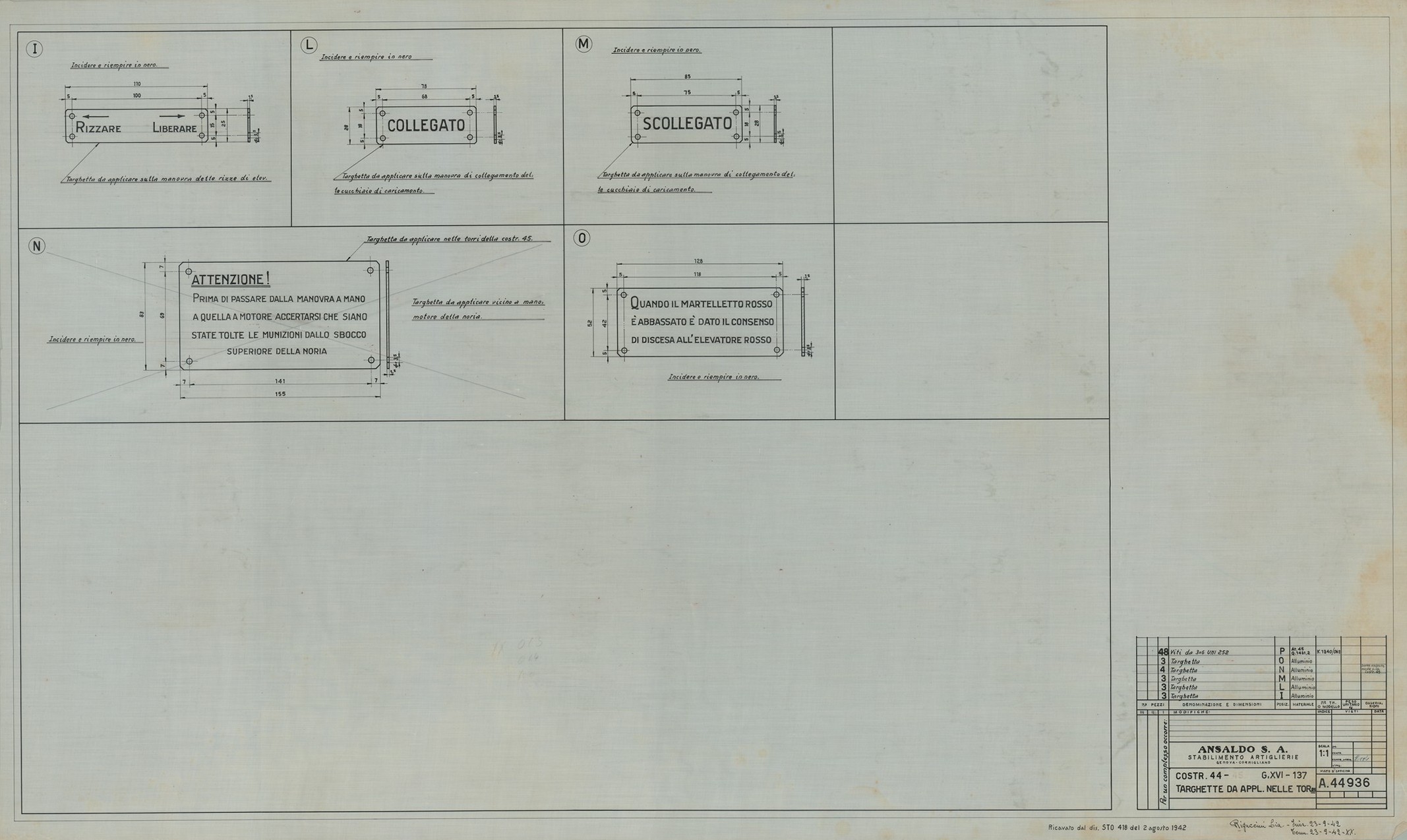 Costruzione 43 - targa e targhetta dell'affusto della bocca da fuoco