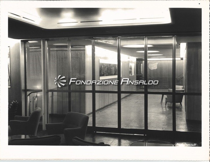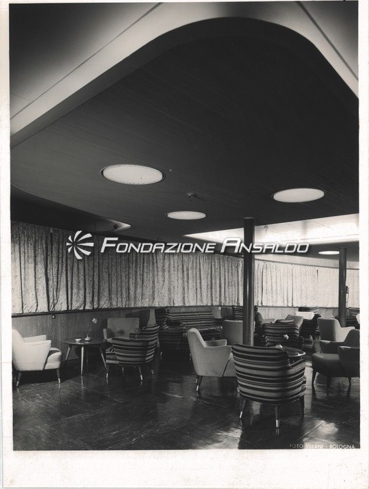 La progettazione degli interni fu affidata a Nino Zoncada e gli allestimenti vennero realizzati dalle Officine Allestimenti Riparazioni Navali (OARN) di Genova. La parete di fondo dello scalone era arricchita da un bassorilievo di Ettore Calvelli, mentre la sala soggiorno fu abbellita da Gianni Russian. La galleria di lettura e scrittura fu decorata da Nino Zoncada con pannelli smaltati sul tema delle costellazioni.