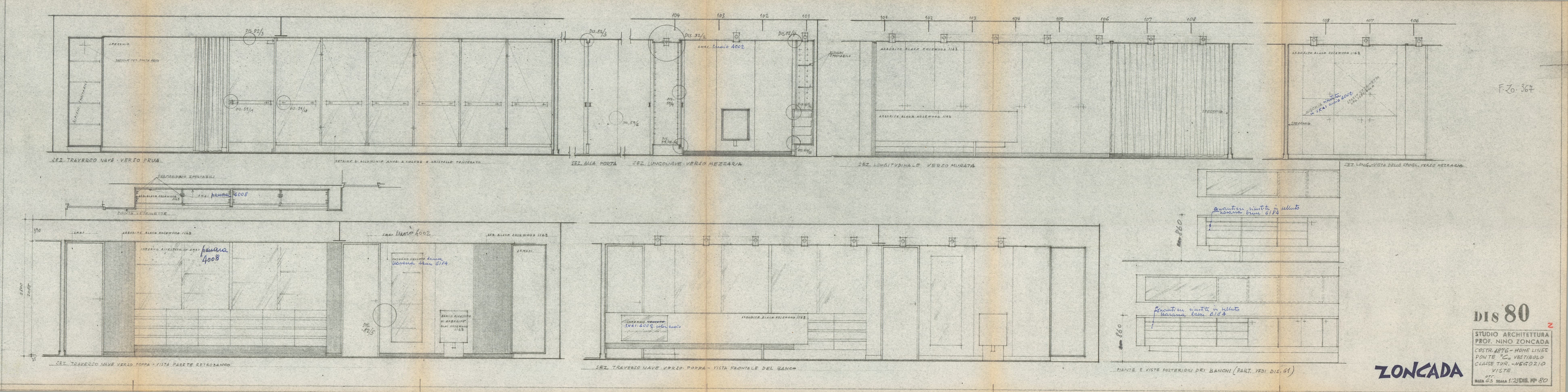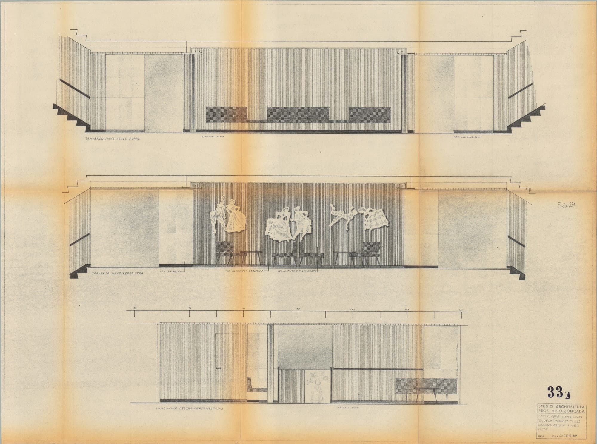 Oceanic - Ponte del lido - Piscine - Sezioni delle quinte e della murata