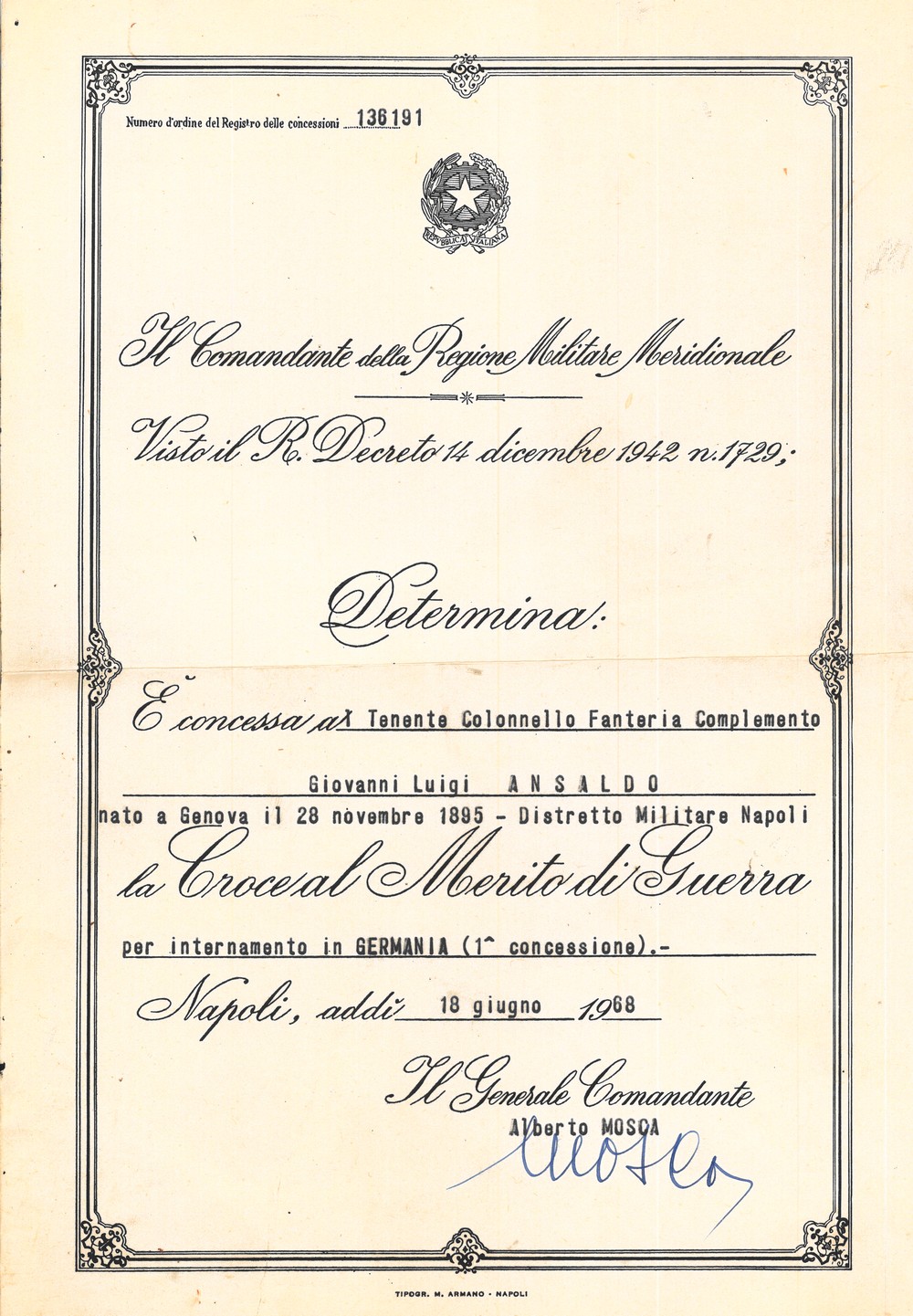 Documenti militari e altro - Giovanni Ansaldo