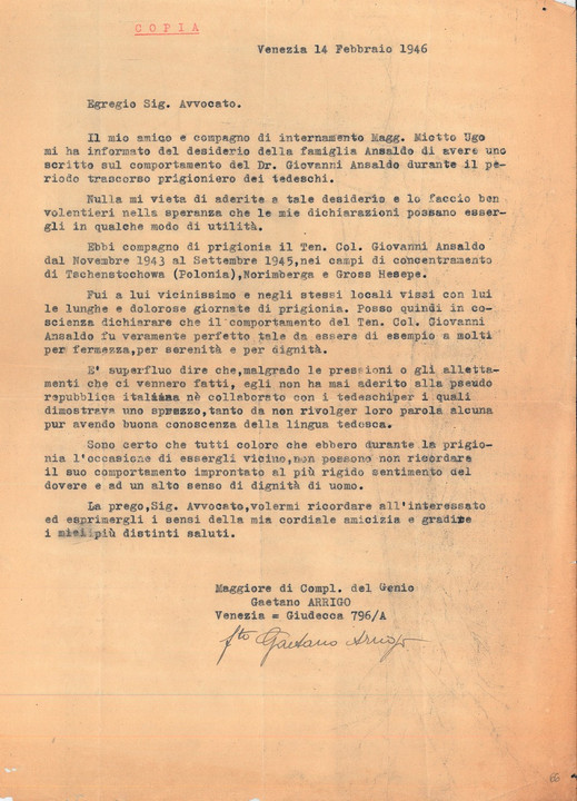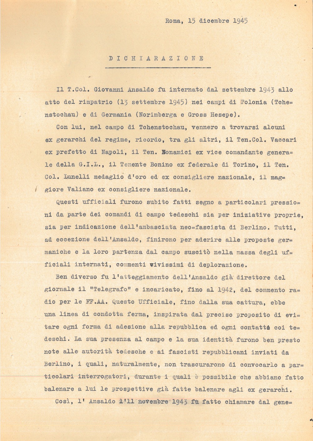Documentazione inerente il processo di Giovanni Ansaldo, al termine della Seconda Guerra Mondiale, per i suoi legami con il regime fascista.