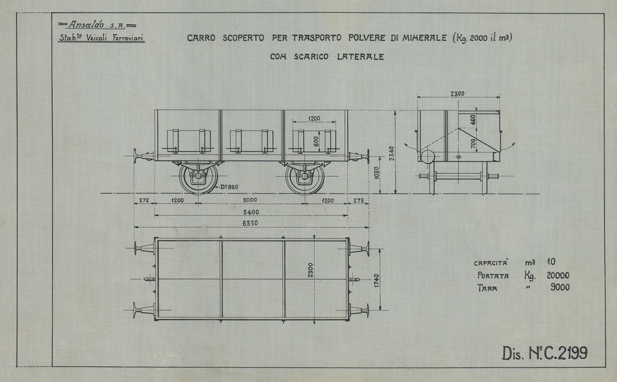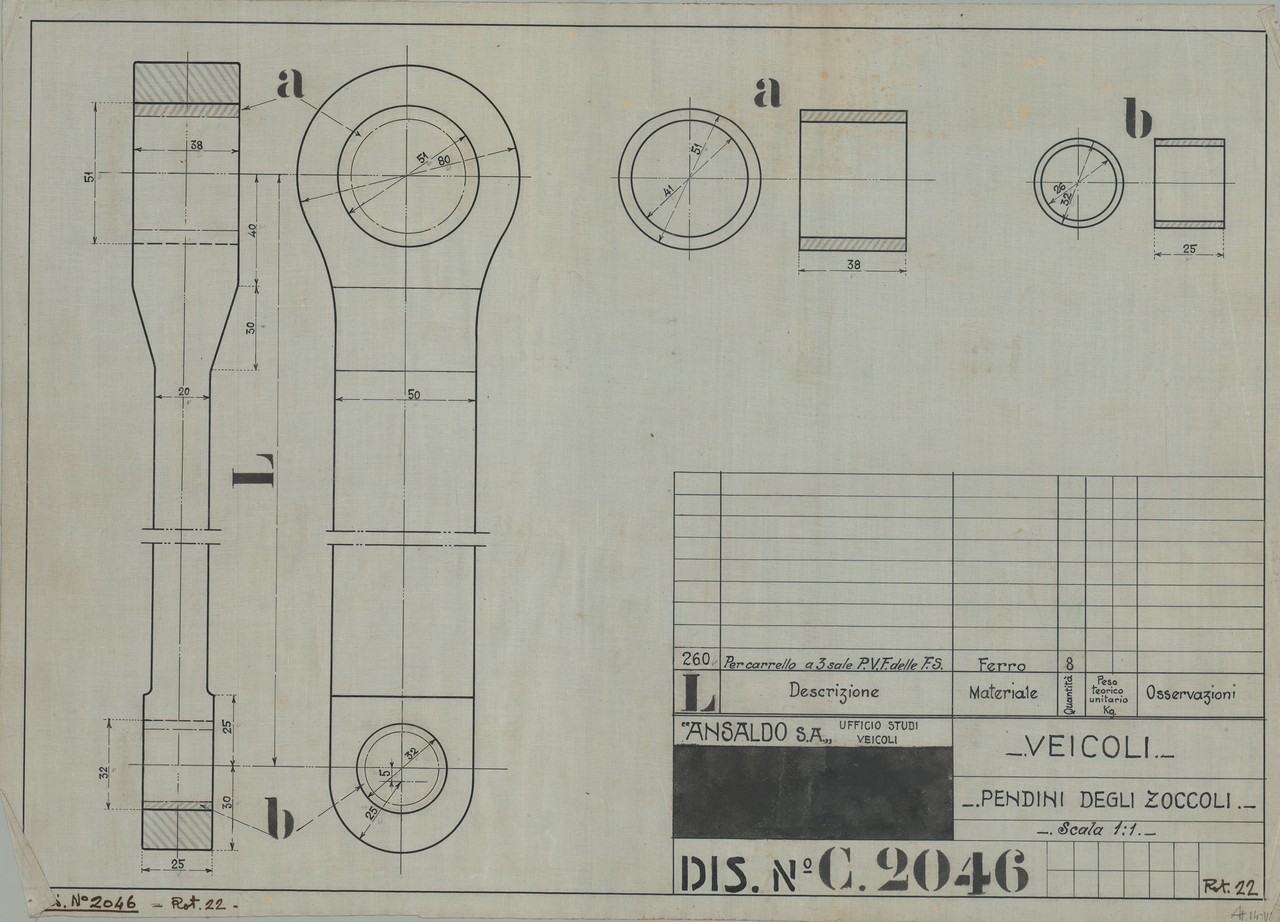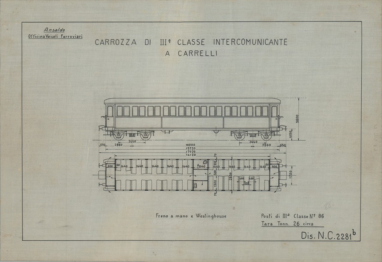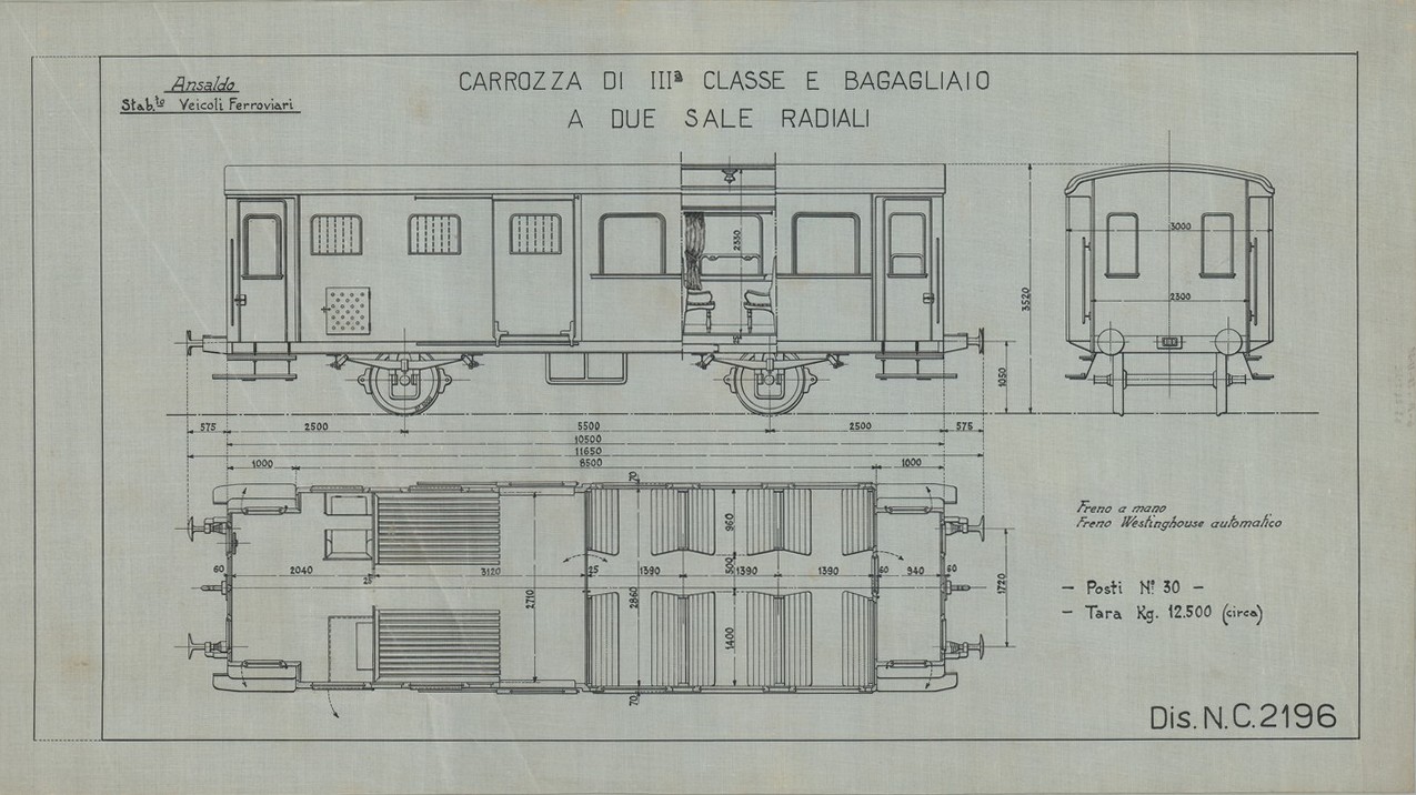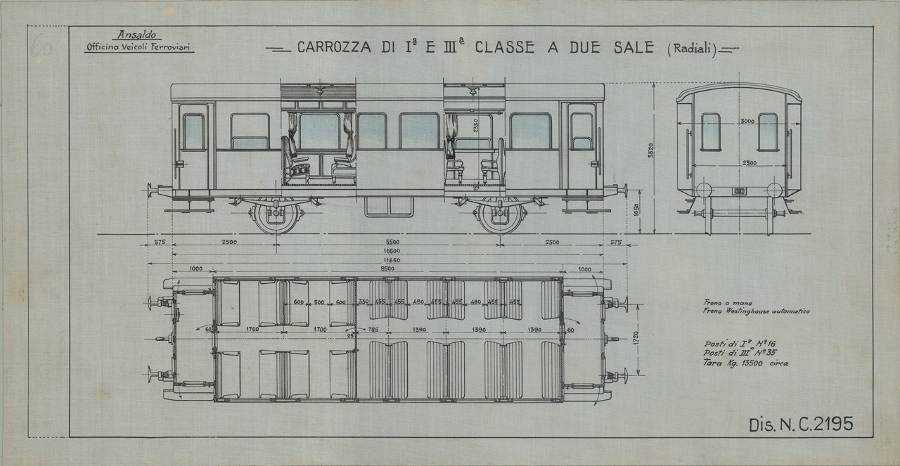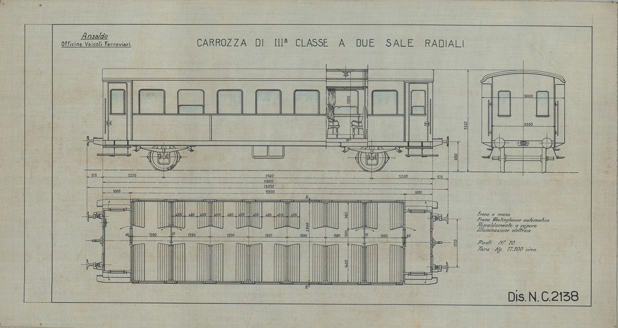 Sono presenti progetti destinati sia al mercato interno che ai mercati esteri e, nella maggioranza dei casi, sono tutti sprovvisti di data. La datazione, almeno a livello indicativo, è stata possibile solo grazie al confronto con il materiale fotografico relativo a produzione analoghe conservato nella Fototeca della Fondazione Ansaldo.
