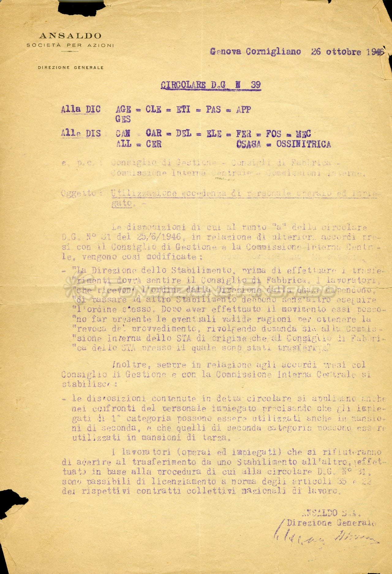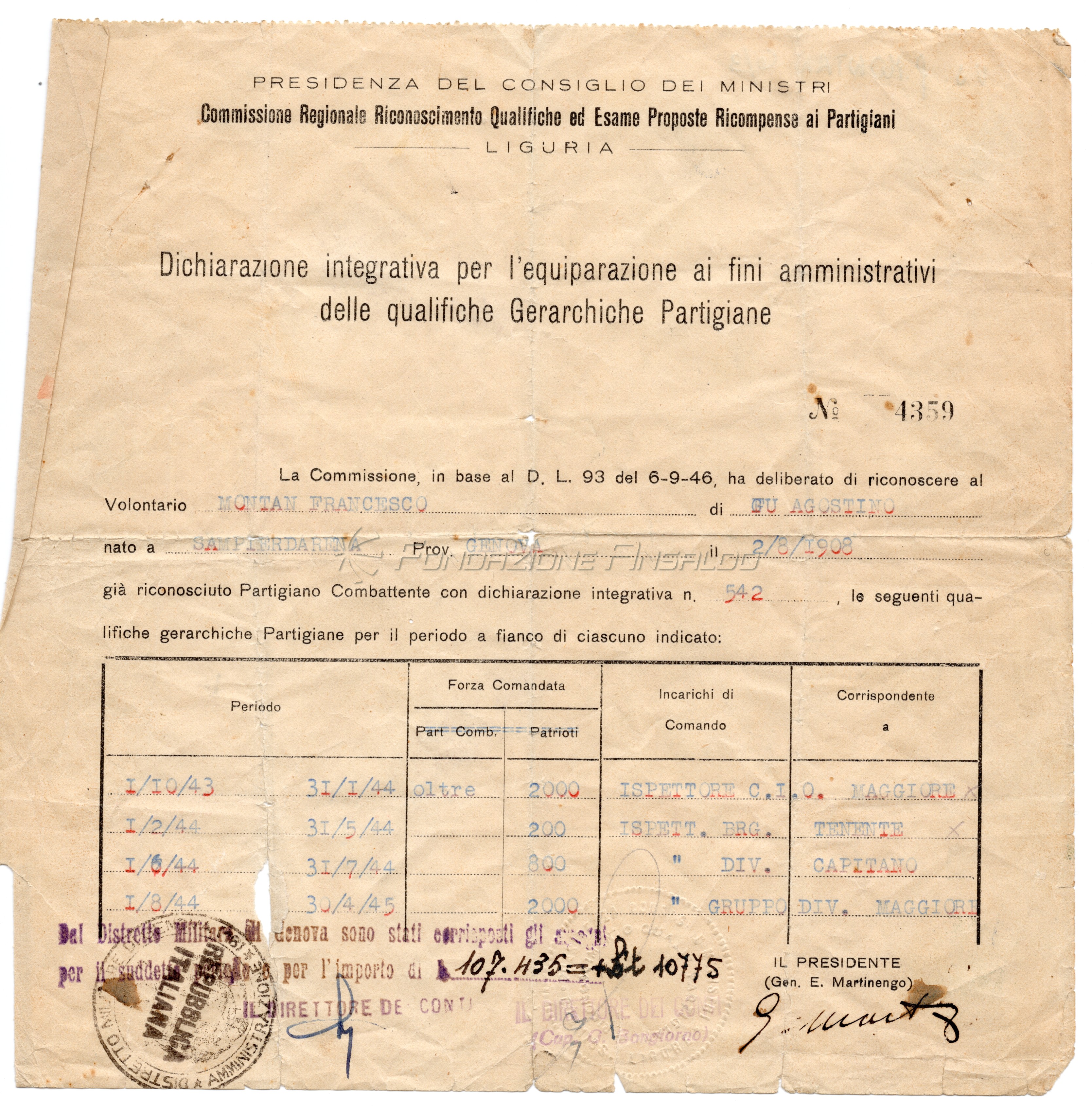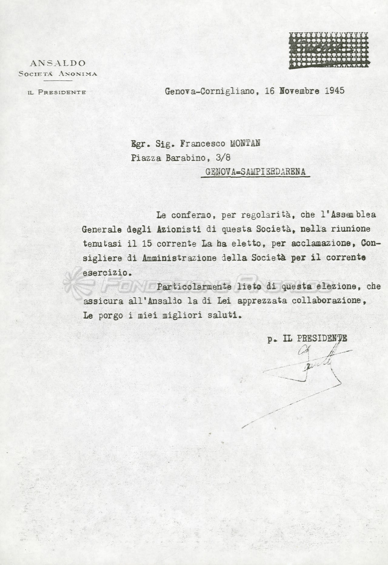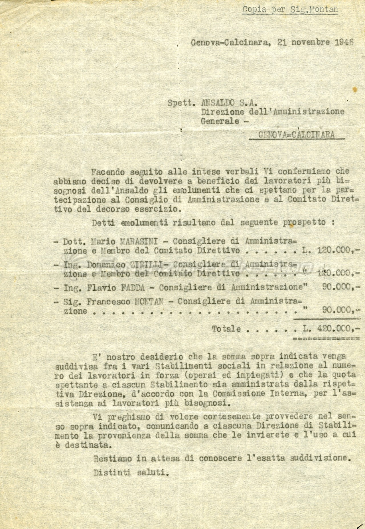 Francesco Montan, operaio dello Stabilimento Meccanico, fu uno dei comandanti partigiani della Divisione Chichero e membro del Consiglio di Amministrazione e del Consiglio di Gestione dell'Ansaldo nell'immediato dopoguerra.