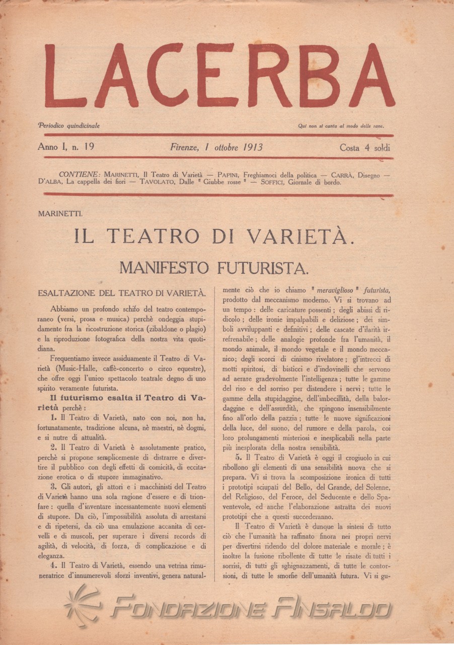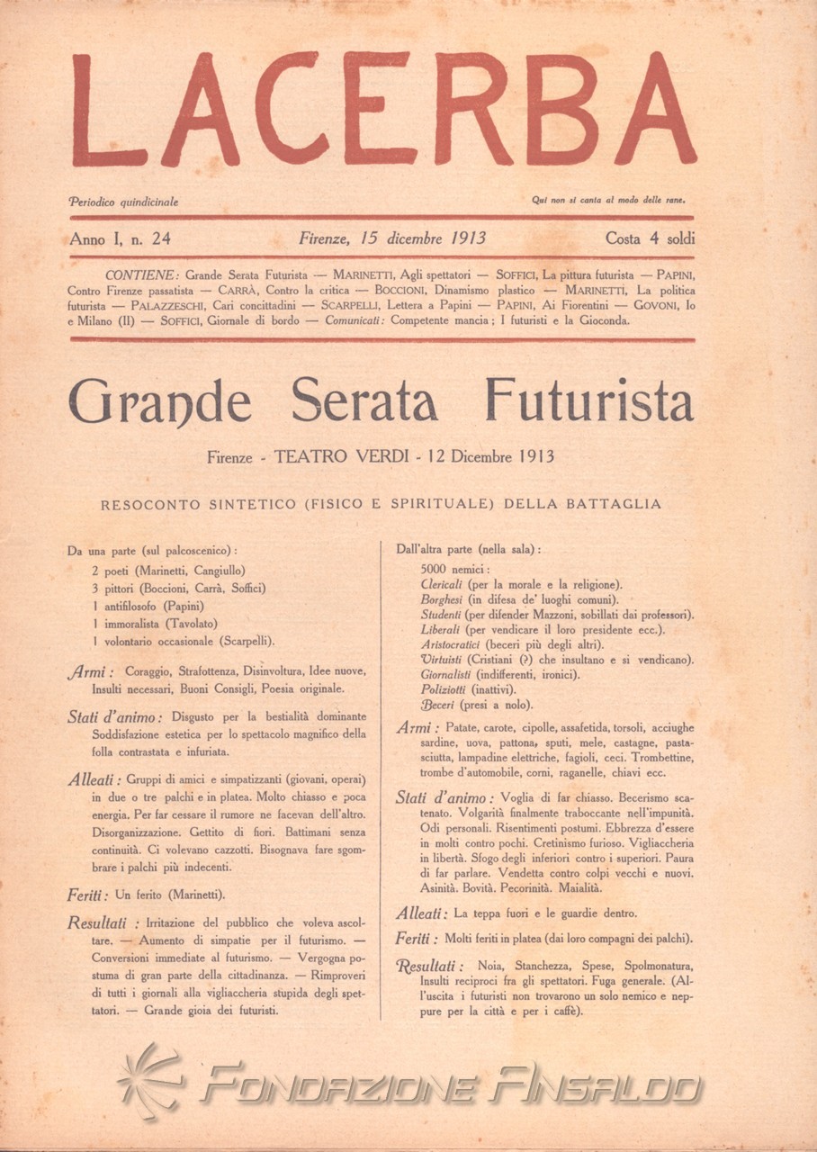 Alla fine del 1914 avviene la rottura definitiva con il movimento futurista. Il legame era durato un anno (marzo 1913 - marzo 1914) per un totale di 24 numeri.