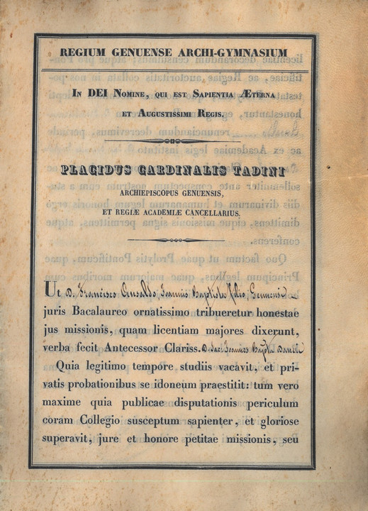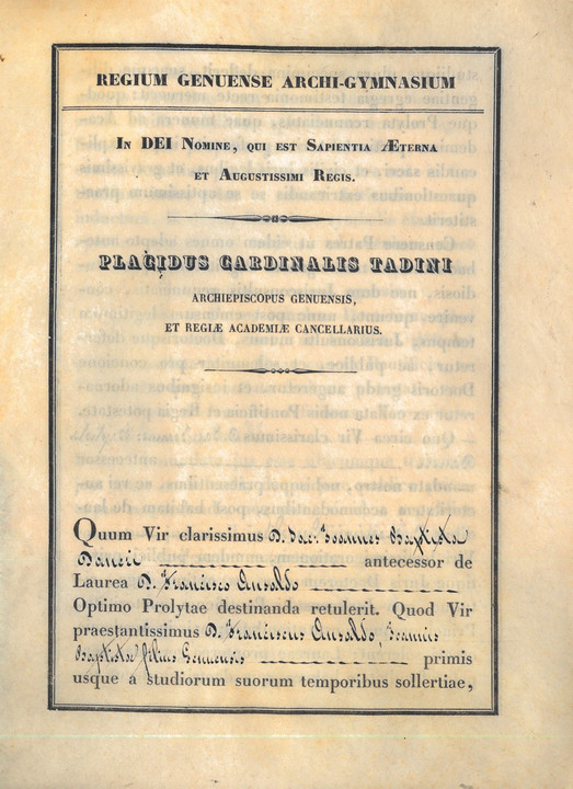 Diploma di laurea di Giovanni Francesco Ansaldo