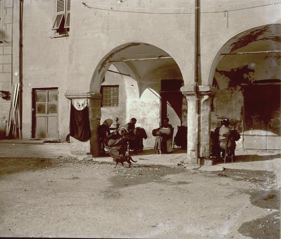 Rita Manari e Paola Franzoni (Lina) alla finestra mentre cuciono