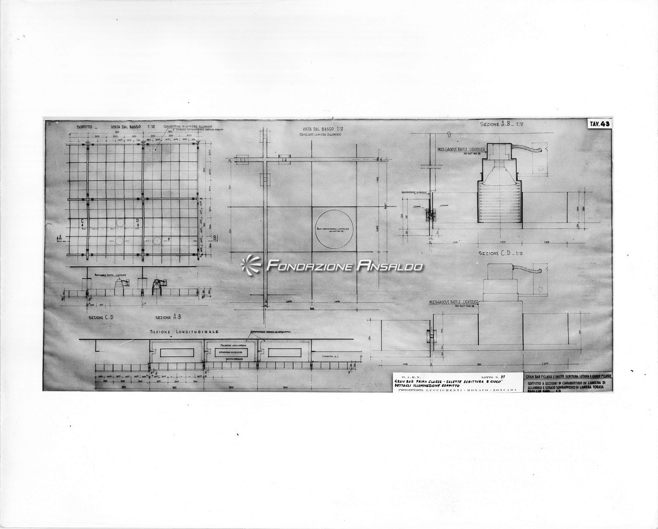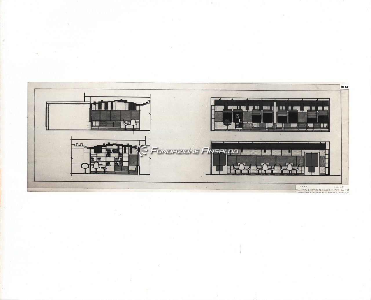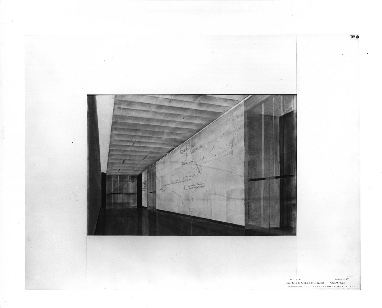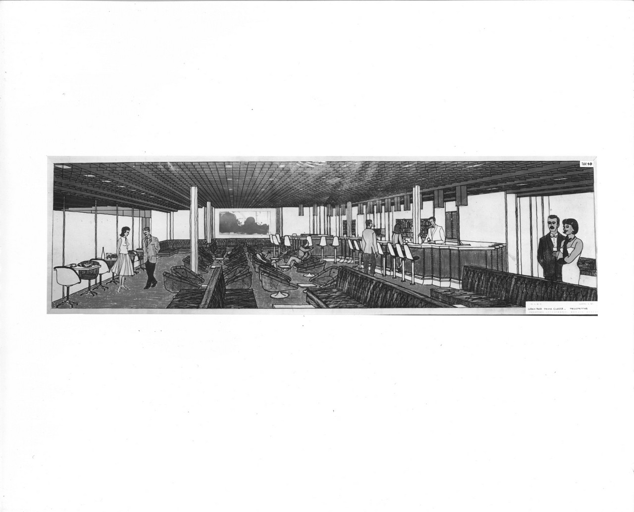 Nella sala di soggiorno era esposto sulla parete di prora un grande arazzo realizzato su disegno di Capogrossi dalla medesima arazzeria Scassa.