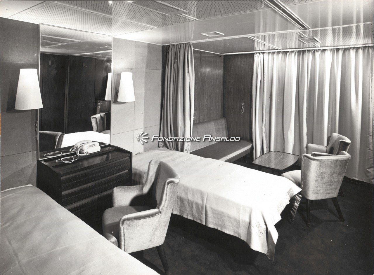 Il progetto di allestimento degli interni fu seguito da diversi architetti con un maggior contributo del veneziano Zoncada. Gustavo Pulitzer progettò gli otto appartamenti di lusso con veranda, Umberto Nordio in collaborazione con Aldo Cervi e Vittorio Frandoli elaborarono alcuni ambienti di classe turistica, le sale di lettura e scrittura, il bar fumoir e il soggiorno panoramico, frutto della collaborazione dello stesso Nordio con gli architetti Hrast e Stelo fu la teeagers room e il cinema-teatro. Glia architetti genovesi Martellani, Guerrello e Bini disegnarono la taverna-discoteca e la cappella.