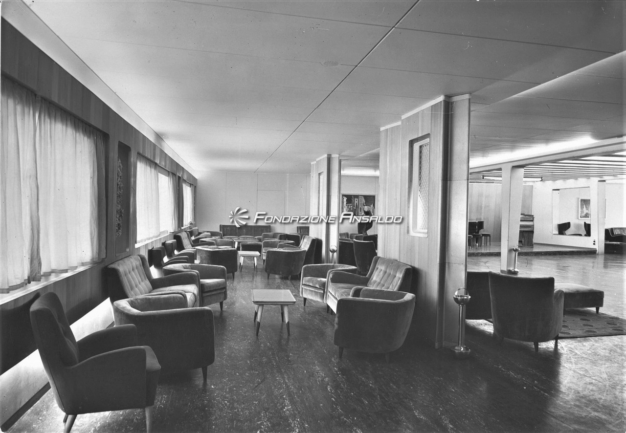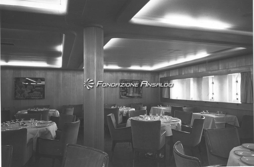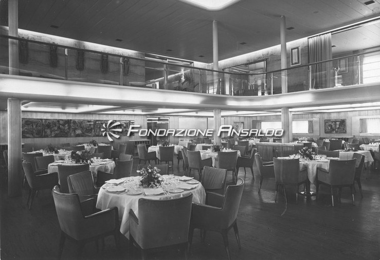 Inoltre per la realizzazione dell’allestimento decorativo della nave vennero chiamati artisti di fama internazionale, come: Fausto Melotti, Edina Altara, Pietro Melandri e Lucio Fontana.