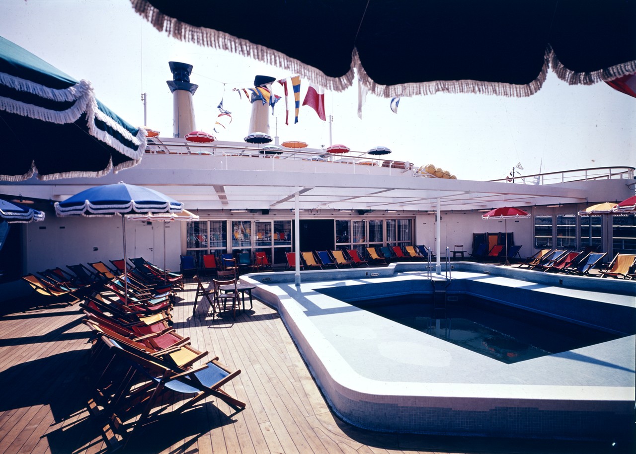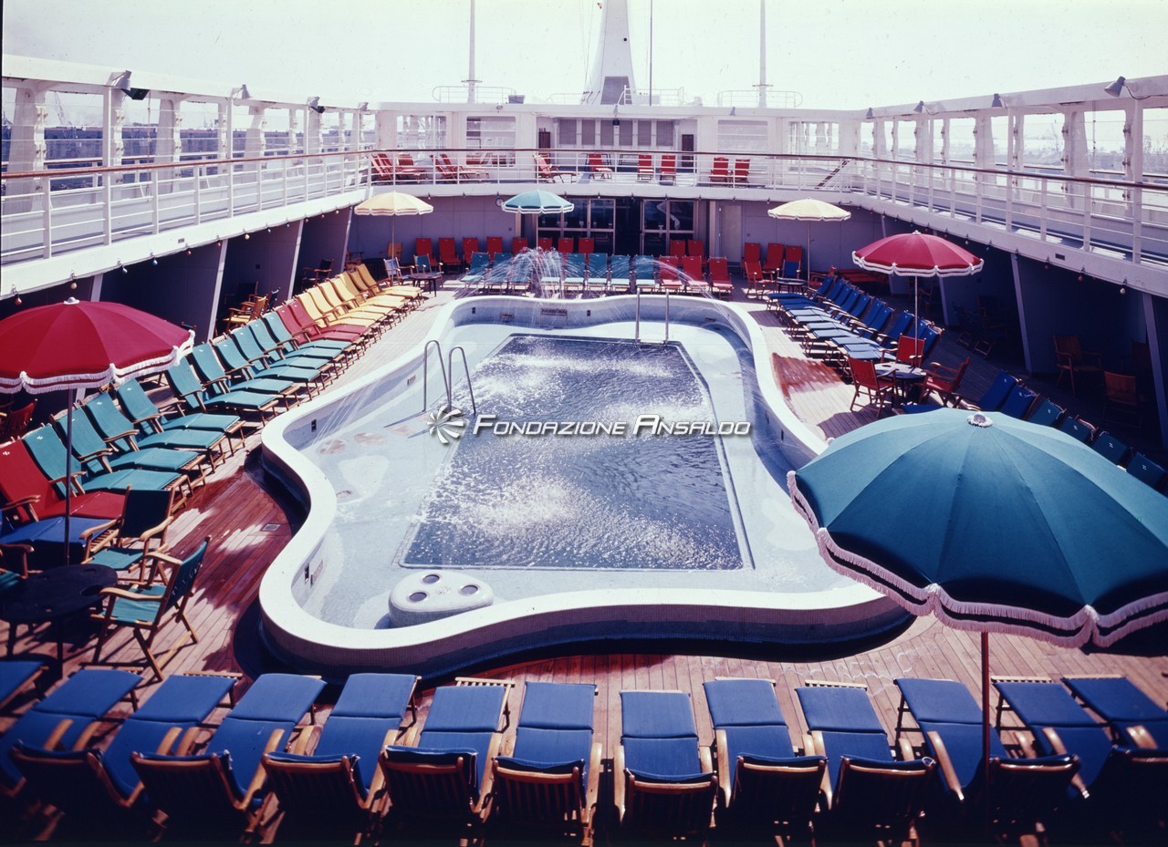 Il progetto di Zoncada si basava sulla continuità decorativa, tutti i saloni furono realizzati su una precisa gamma cromatica in accordo con il nome delle sale: Ambra, Opale, Rubino e Turchese. Il locale più importante era la sala delle feste di prima classe (Ambra) che seguiva lo sviluppo curvo del frontale della nave, arredata con poltrone di velluto color ambra e beige, il pavimento era rivestito in moquette in lana color marrone testa di moro mentre sulle pareti erano esposte due opere su tela di Massimo Campigli. Per tutti gli altri saloni, Zoncada si affidò ad artisti con cui aveva consolidata esperienza: Massimo Campigli e i genovesi: Emanuele Luzzati, Oscar Saccorotti, Giovanni Solari, Luigi Spacal, Enrico Paulucci, Pino Casarini e Ferruccio Quaia.