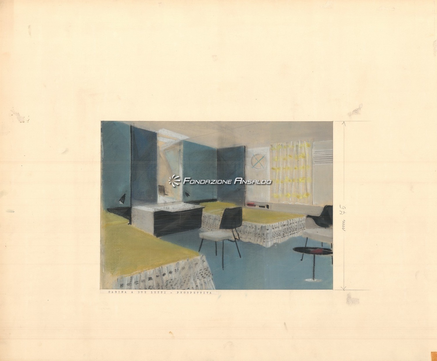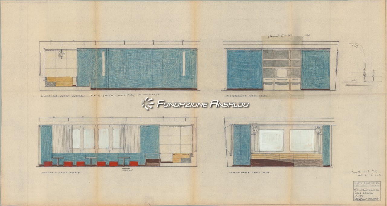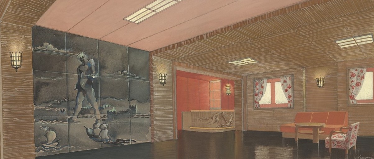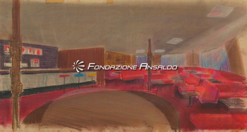 Traghetto Navalmeccanica - Rappresentazione su carta da lucido del soggiorno bar e ufficio turistico