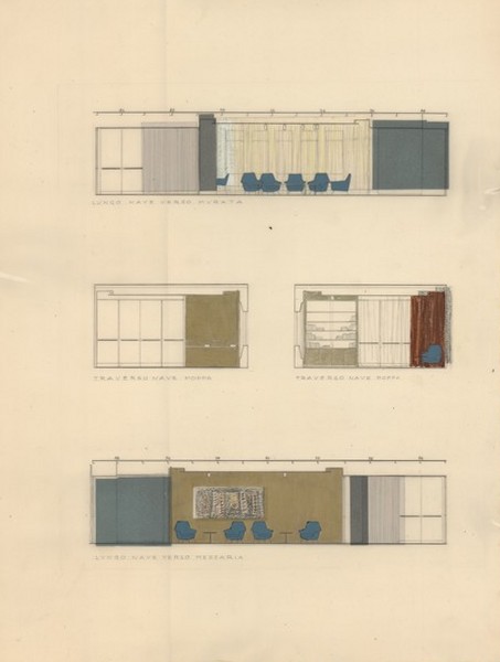 Traghetto Navalmeccanica - Progetto della sala da pranzo e adiacente galleria