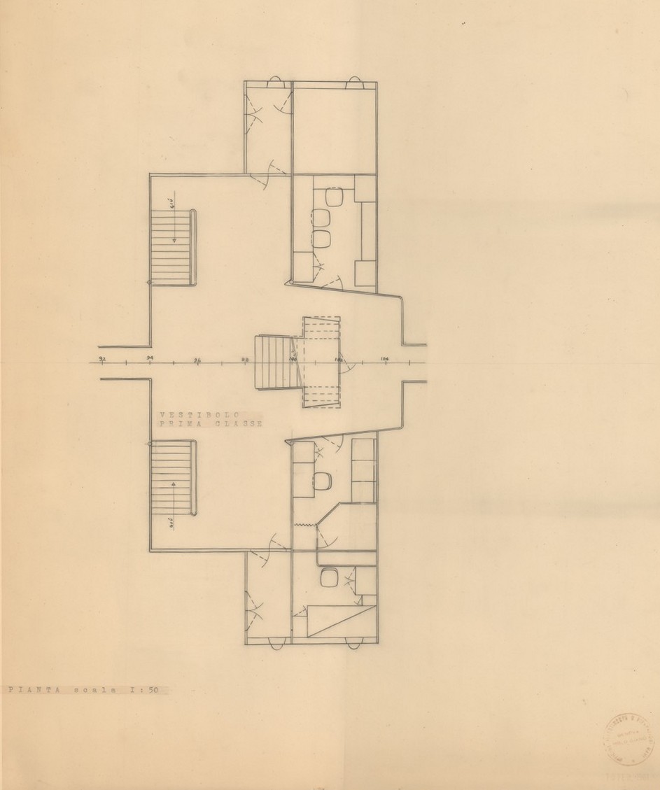 Nave non identificata - Rappresentazione su cartoncino del vestibolo di I classe