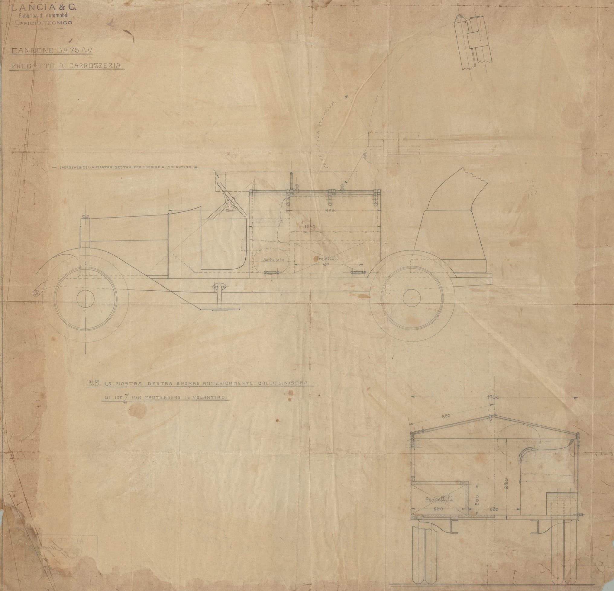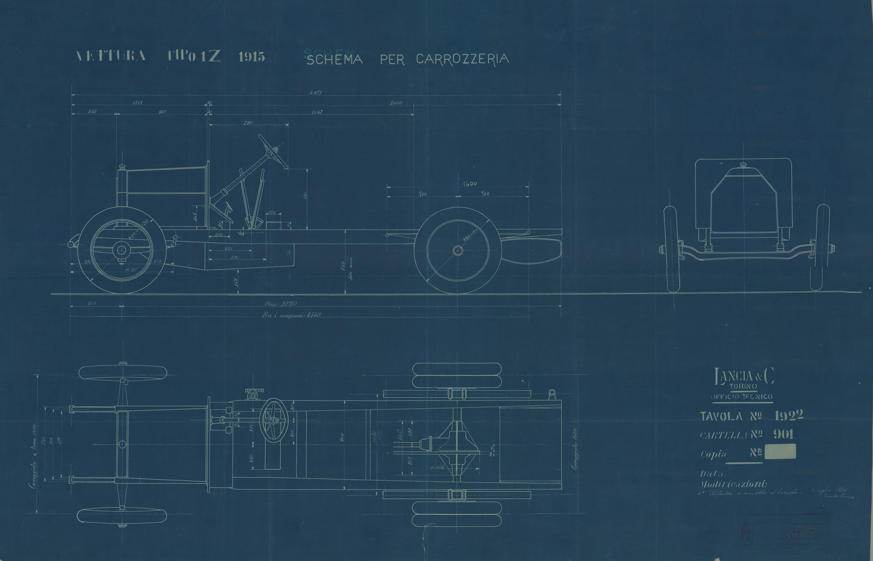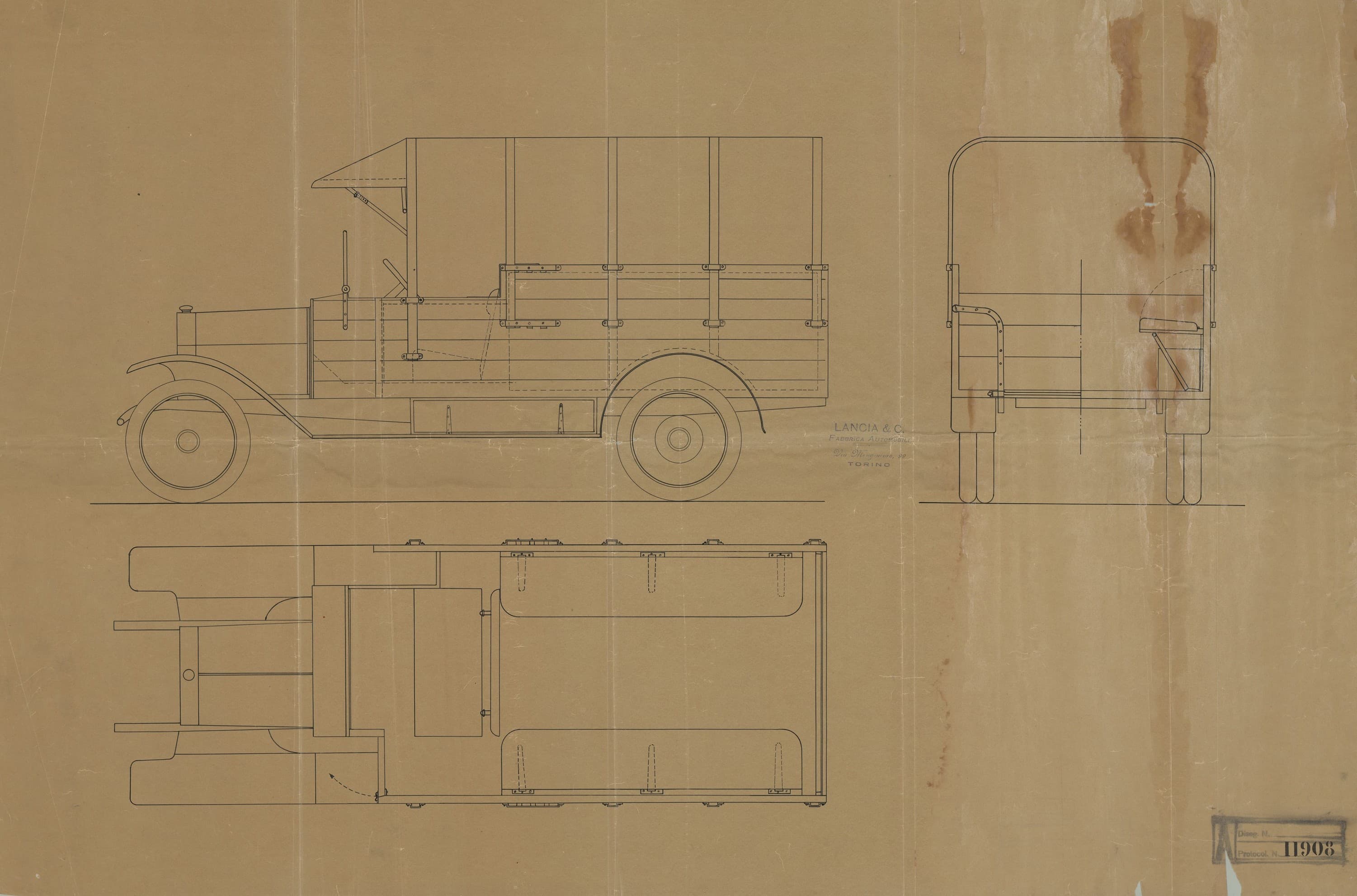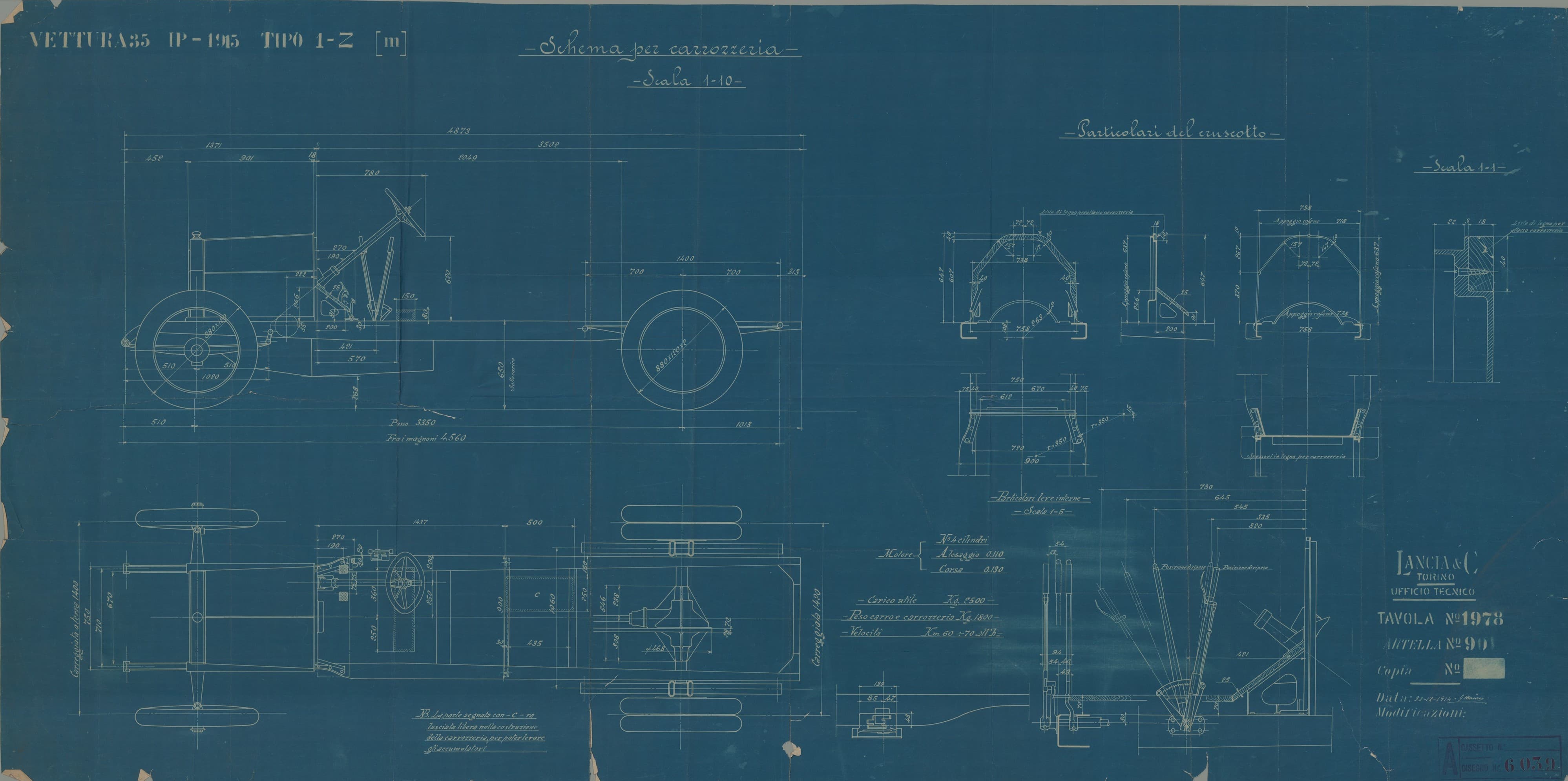 L’archivio disegni custodisce molti disegni originali Lancia e altri progetti legati a sperimentazioni su telai Lancia in varie configurazioni.