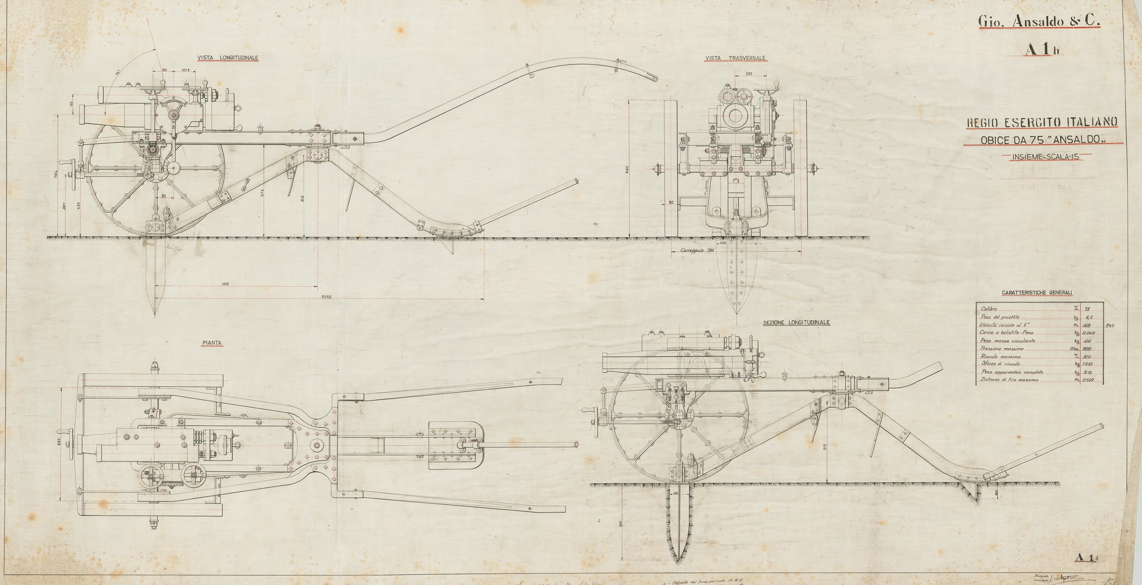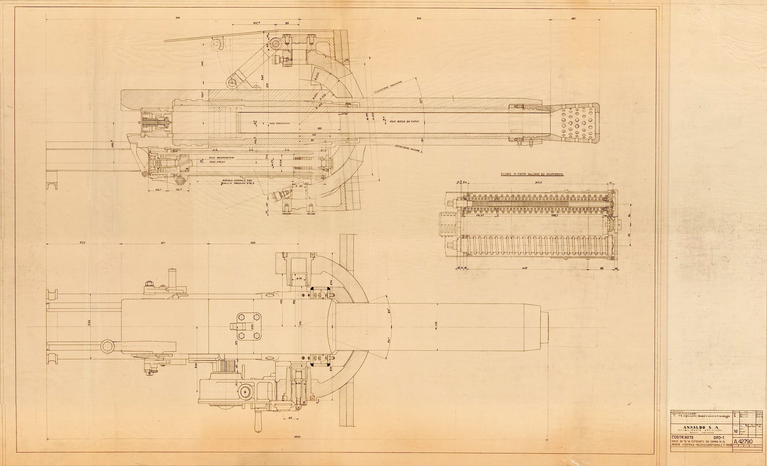 Obice da 70 - insieme e sezione