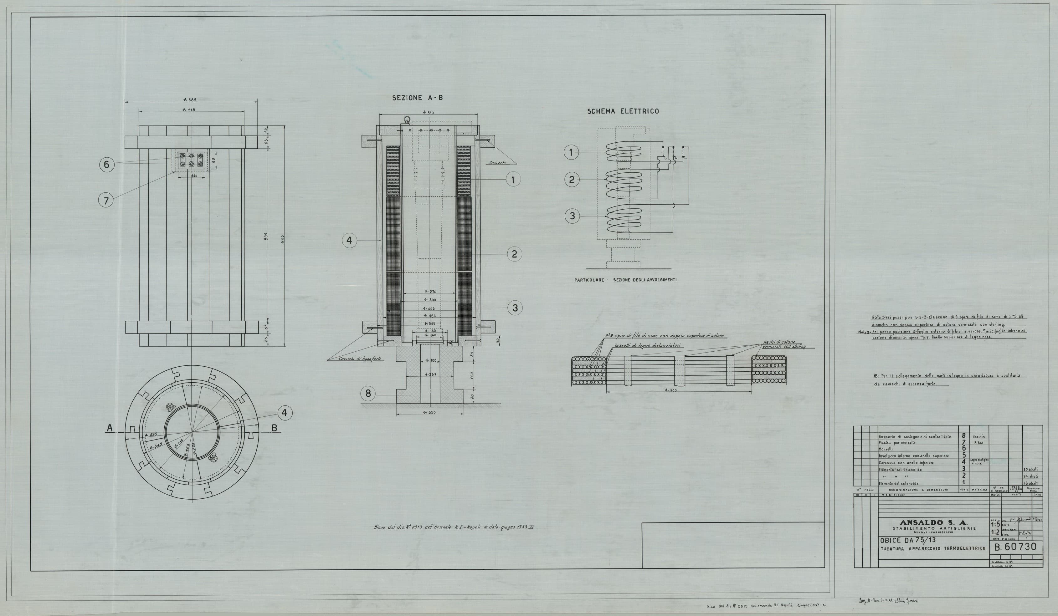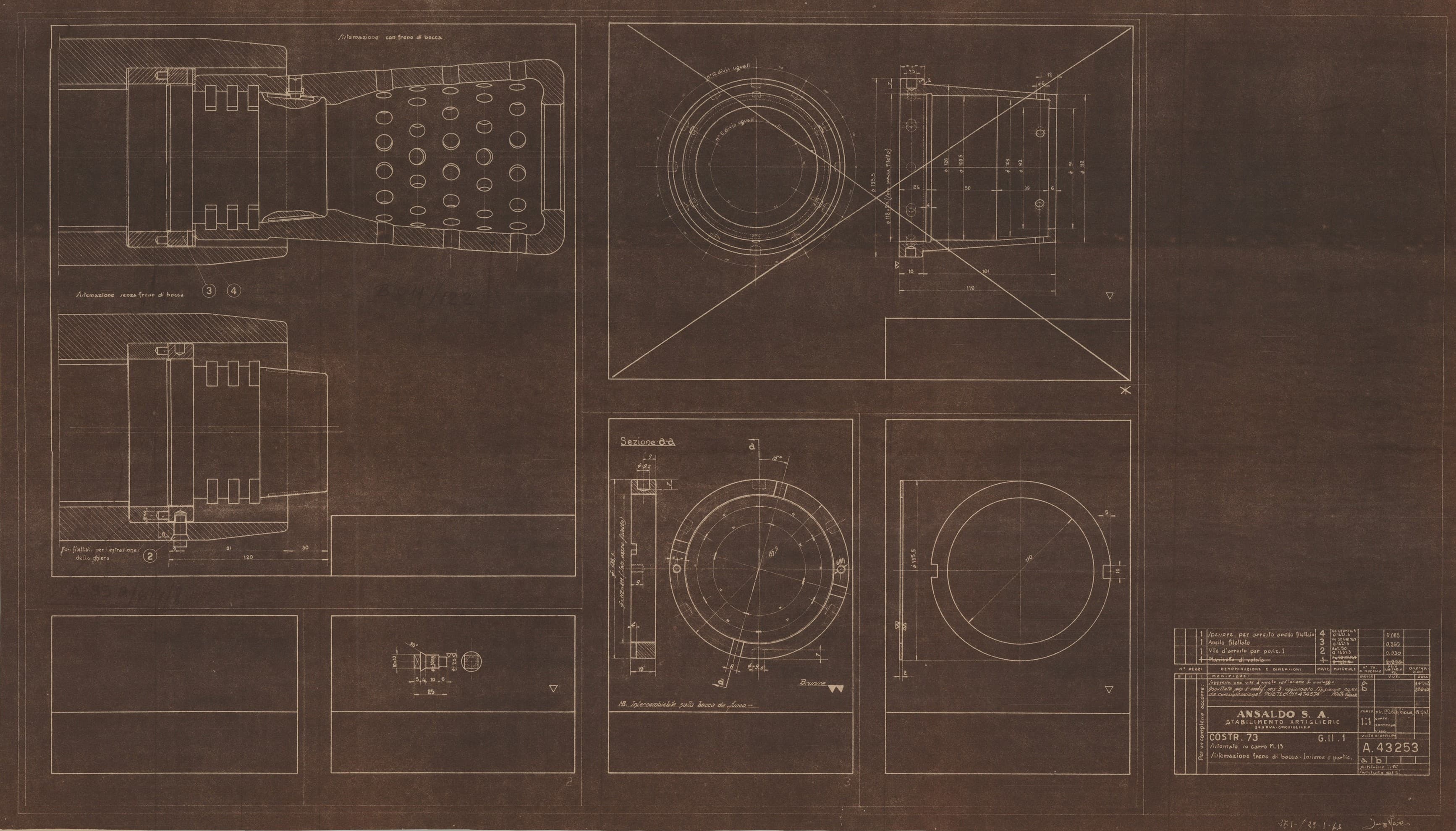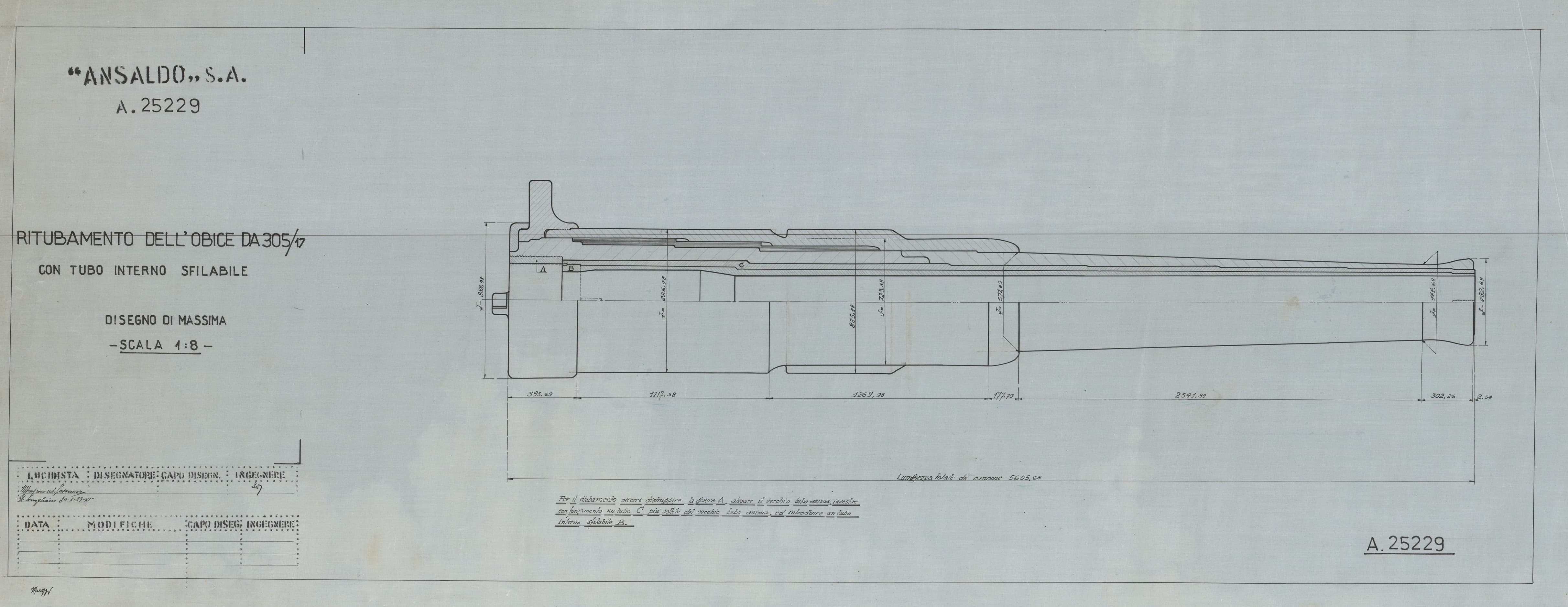 Ritubamento dell'obice da 305/17 - disegno di massima