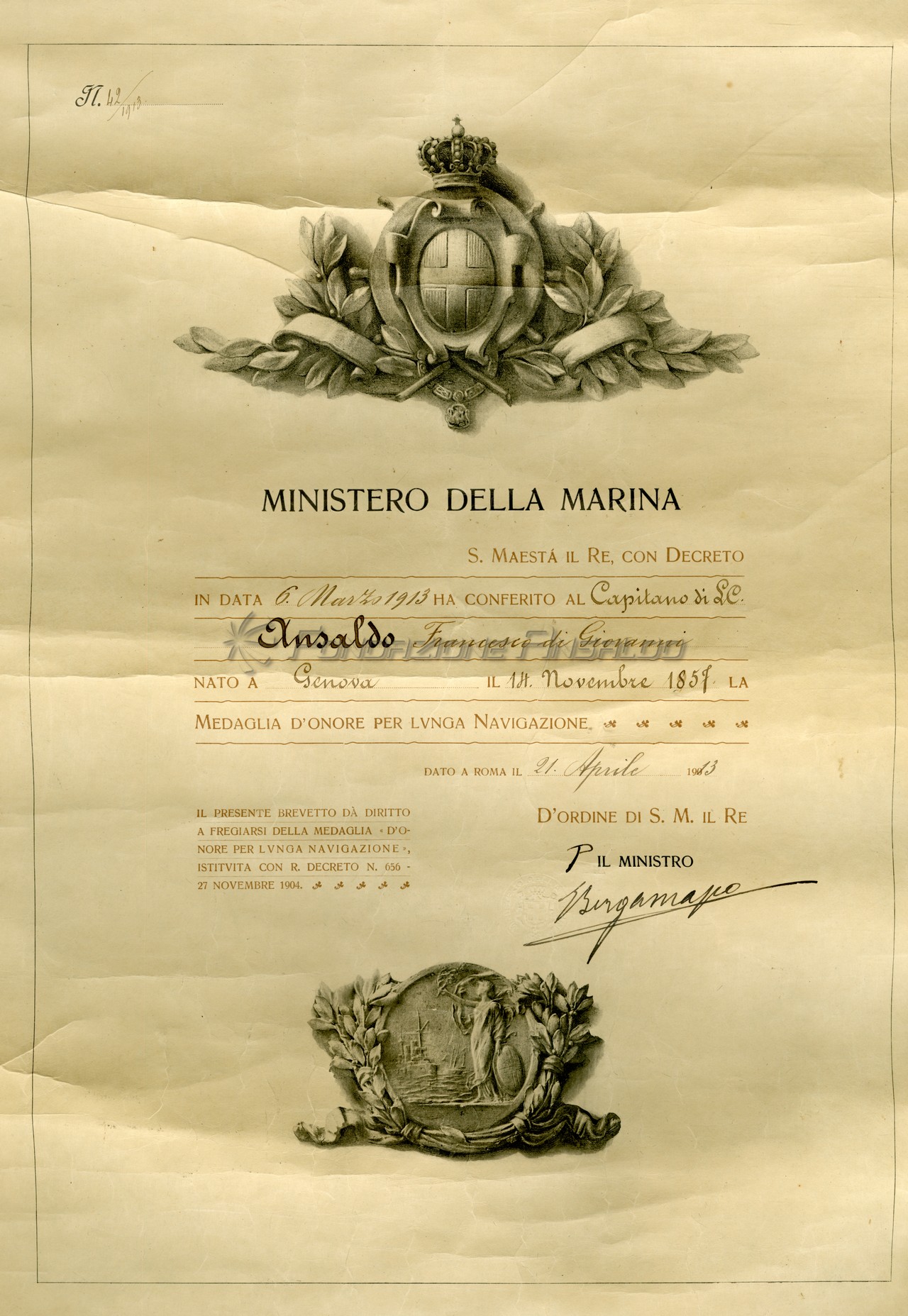 "Registro in onore alla carriera di Francesco Gerolamo Ansaldo"