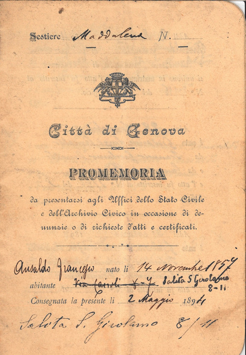 "Richieste di certificati relativi allo stato di famiglia di Francesco Gerolamo Ansaldo"