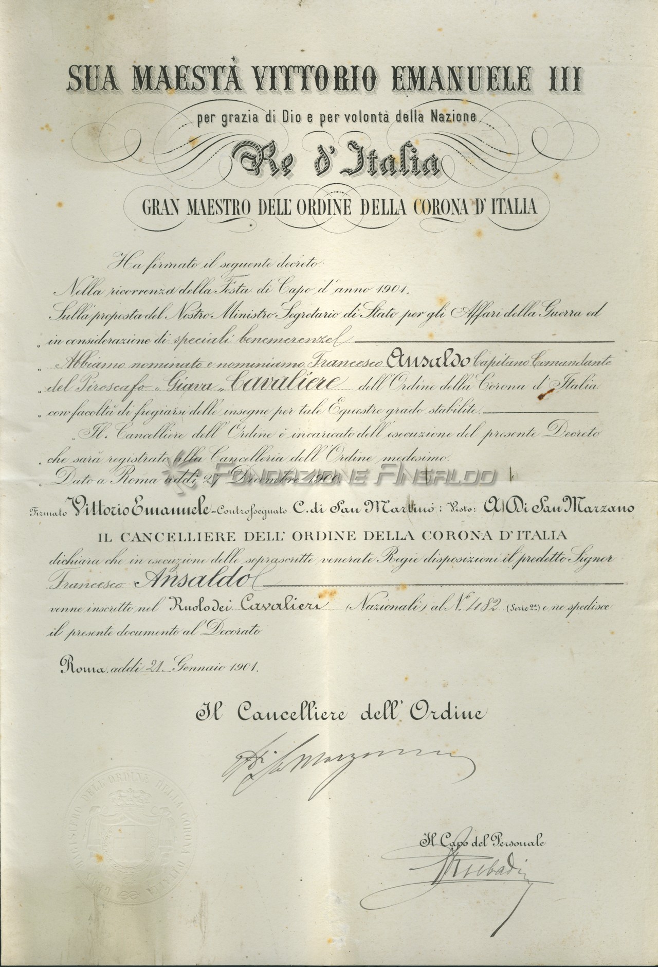 Nomina a Cavaliere dell'Ordine della Corona d'Italia