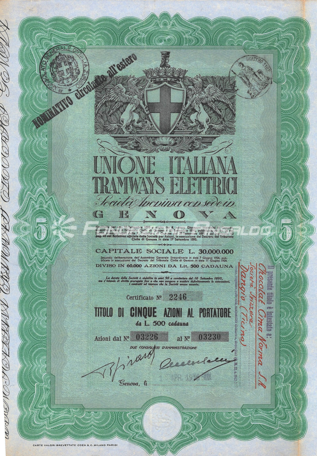 - "Unione Italiana Tramways Elettrici. Materiale rotabile in esercizio sulle linee dei tramways di Genova"